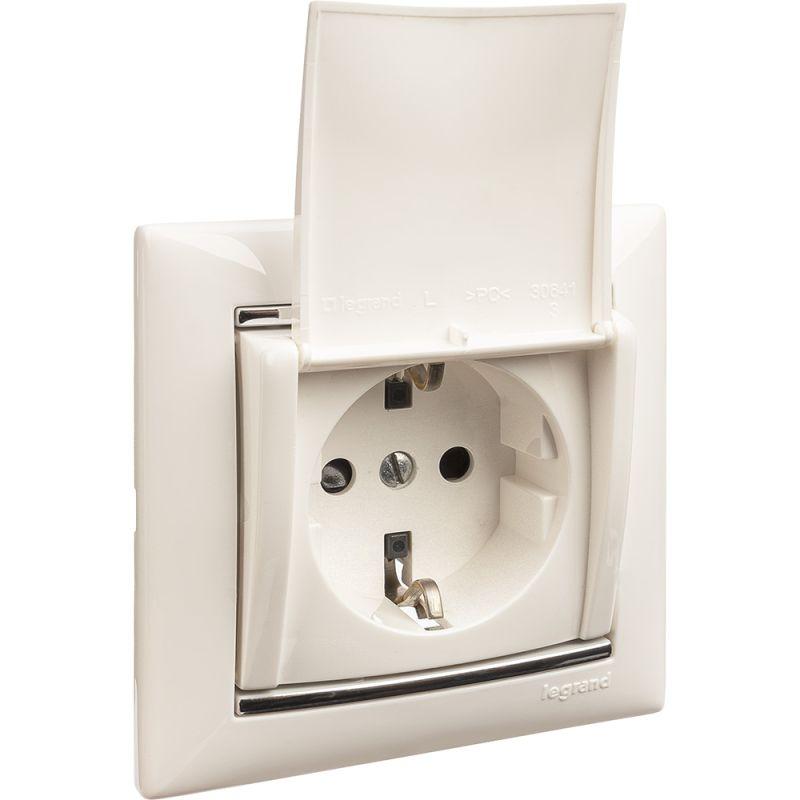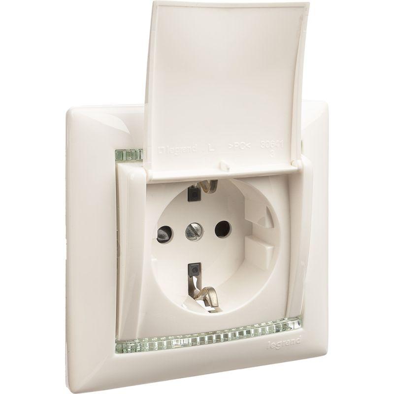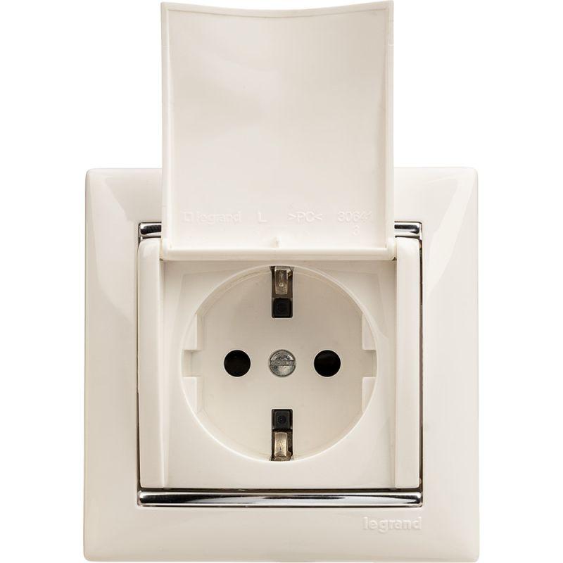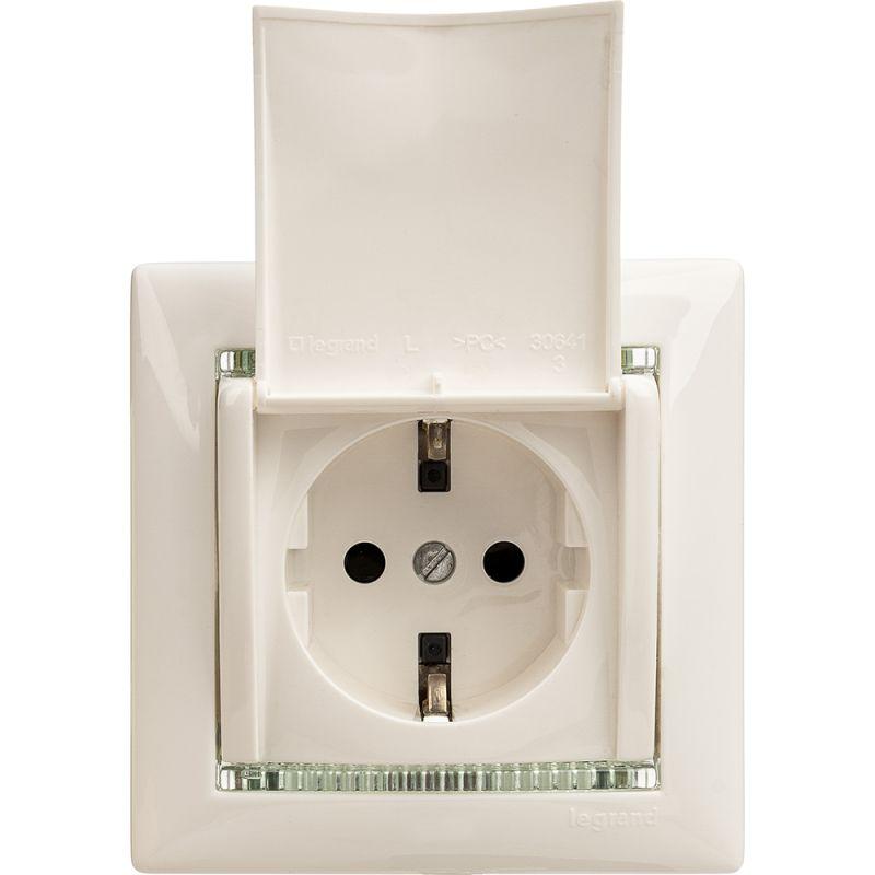 774422 | Розетка 1-м СП Valena 16А IP21 2P+E с заземл. защ. шторки с крышкой винты механизм бел. Leg