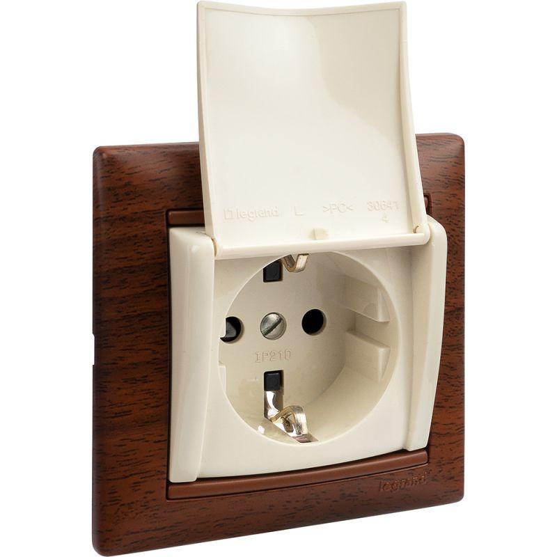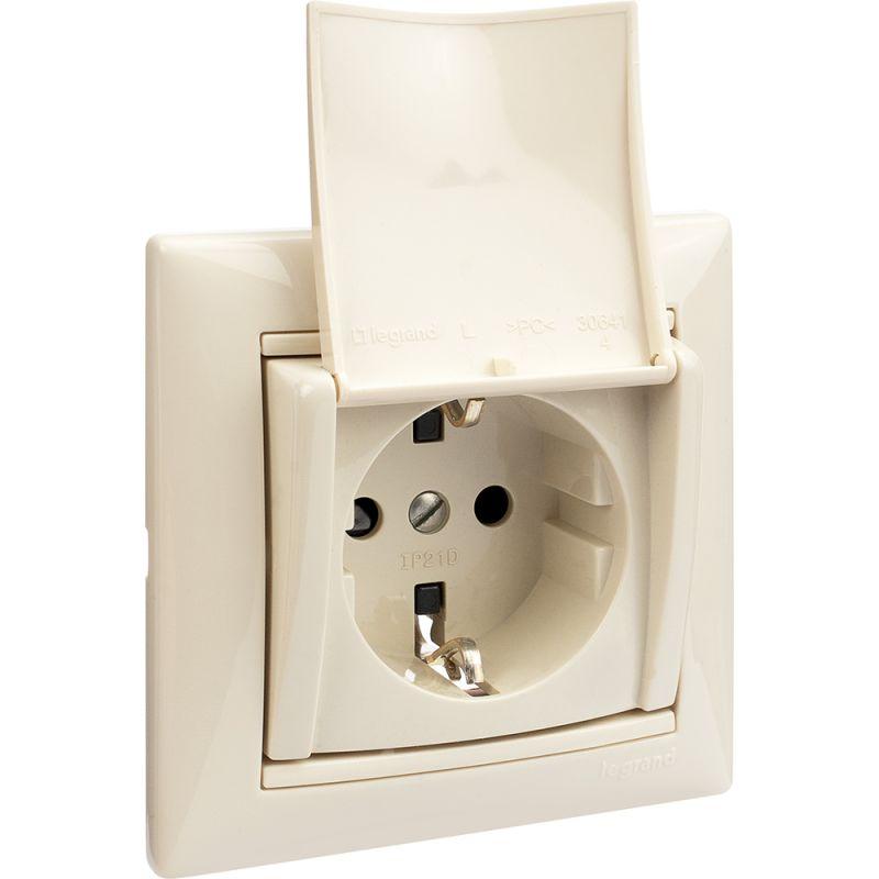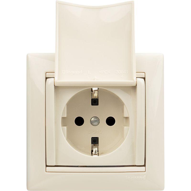 774322 | Розетка 1-м СП Valena 16А IP21 2P+E с заземл. защ. шторки с крышкой винты механизм сл. кость Leg
