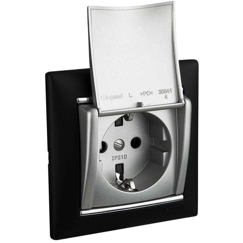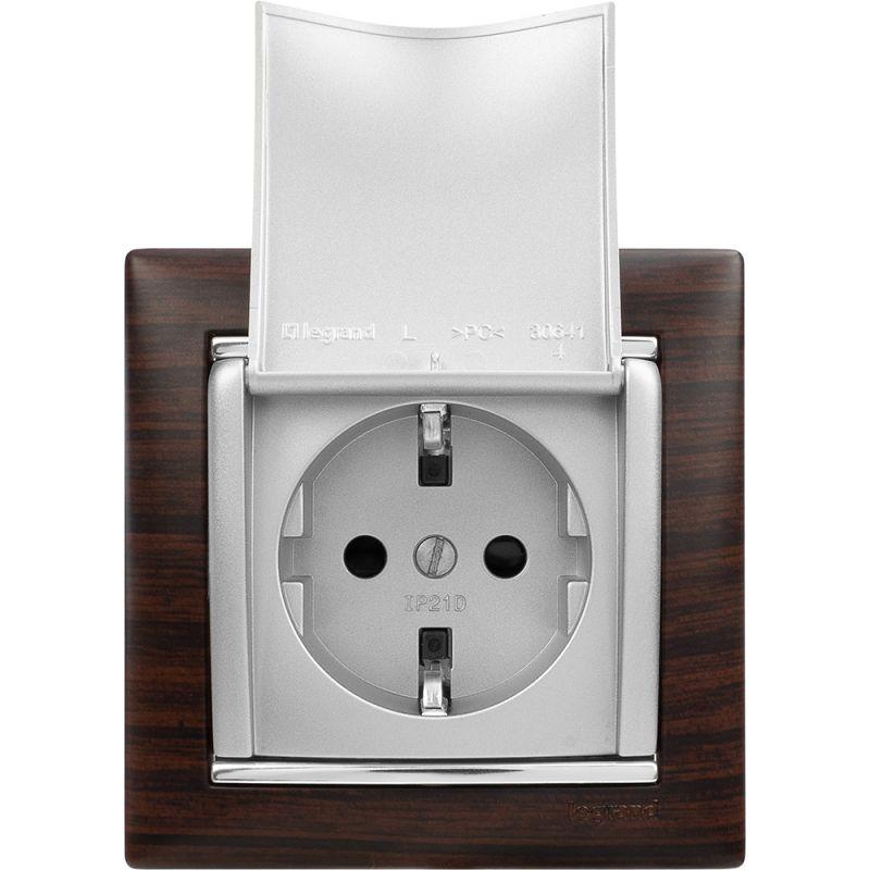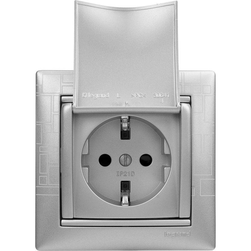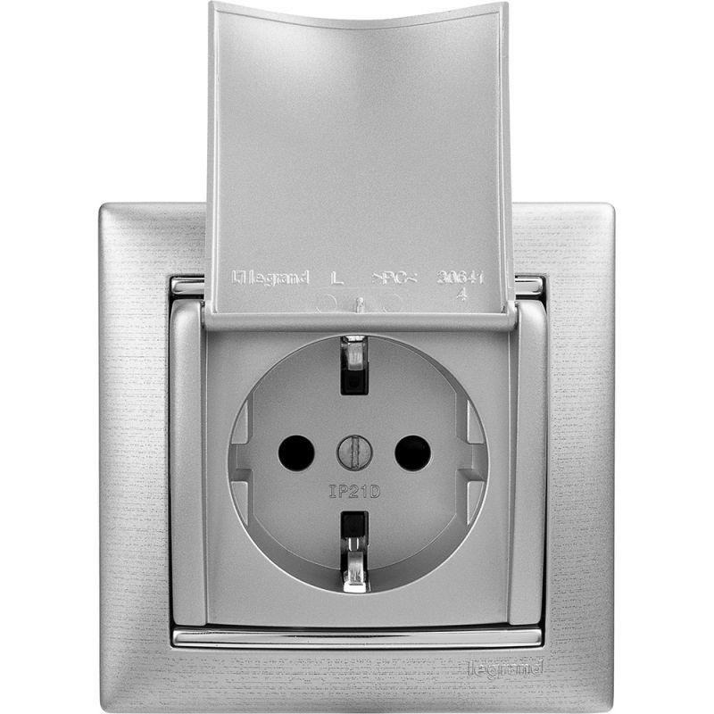 Розетка 1-м СП Valena 16А IP21 с заземл. с крышкой немецк. стандарт винты механизм алюм. Leg 770122