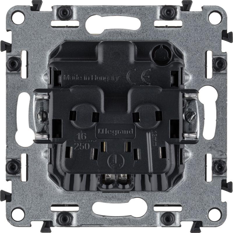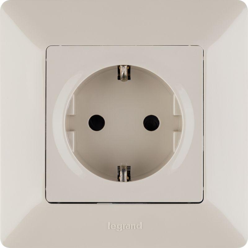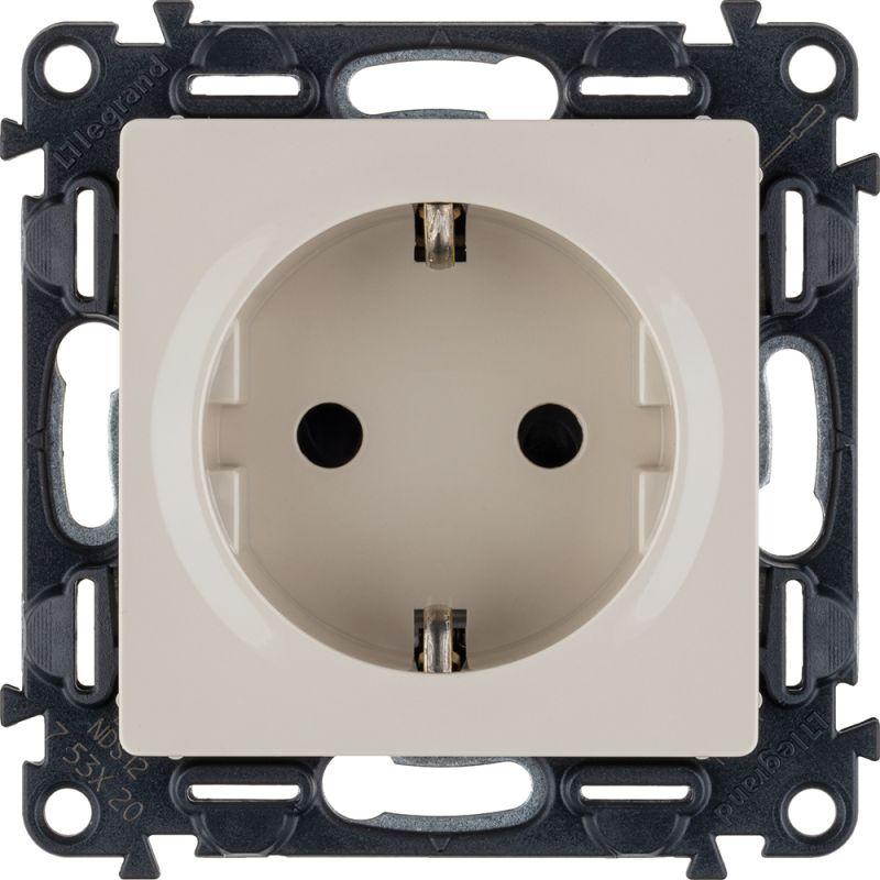 753520 | Розетка 1-м СП Valena Life 16А IP20 250В 2P+E защ. шторки безвинтов. клеммы с лицев. панелью механизм сл. кость Leg