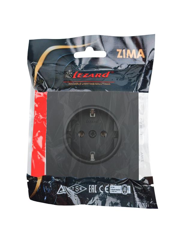 704-4288-122BQC | Розетка 1-мест. с/з ПБТ СП ZIMA IP20 16А безвинт. зажим черн. бархат LEZARD