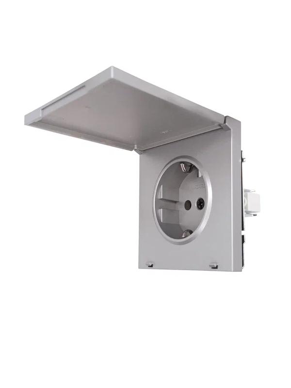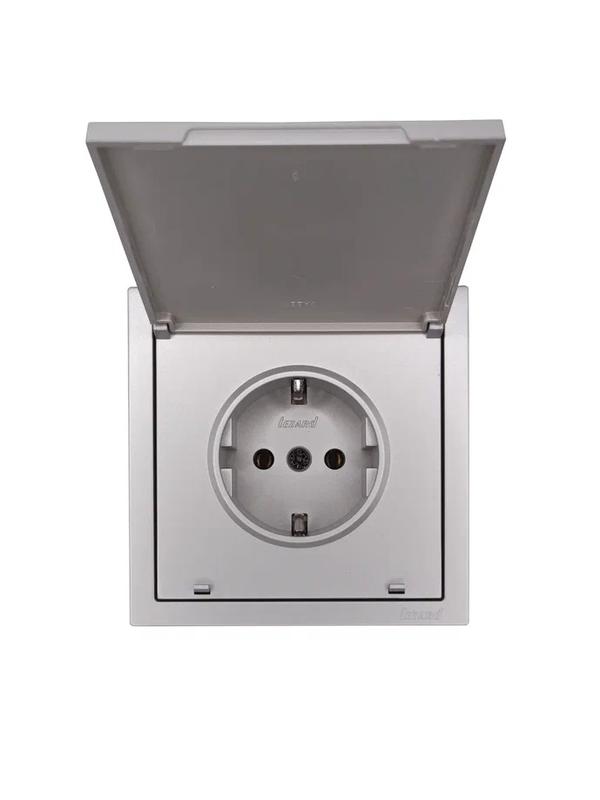 Розетка 1-мест. с/з с крышкой ПБТ СП ZIMA IP20 16А безвинт. зажим сер. матов. LEZARD 704-7488-123BQC