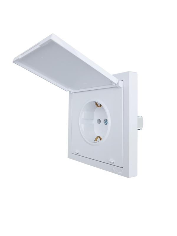704-0288-123BQC | Розетка 1-мест. с/з с крышкой СП ZIMA 16А ПБТ безвинт. зажим бел. LEZARD