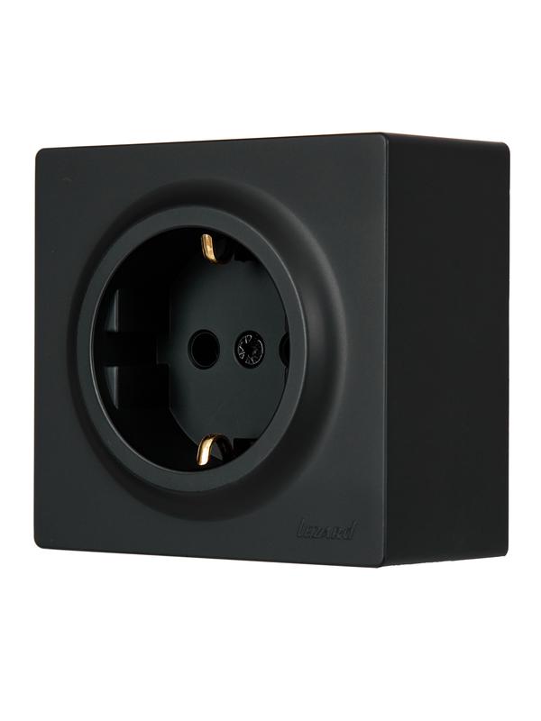 752-4200-122B | Розетка 1-м ОП LETO с заземл. ПБТ черн. бархат LEZARD
