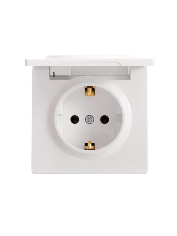 752-0200-123B | Розетка 1-м ОП LETO с заземл. с крышкой LETO ПБТ бел. LEZARD