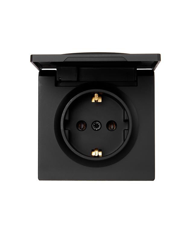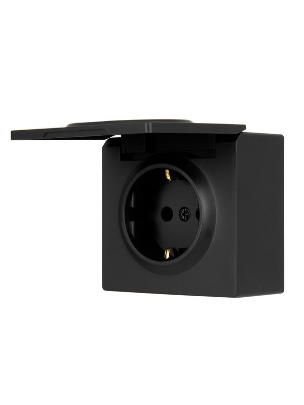 752-4200-123B | Розетка 1-м ОП LETO с заземл. с крышкой LETO ПБТ черн. бархат LEZARD