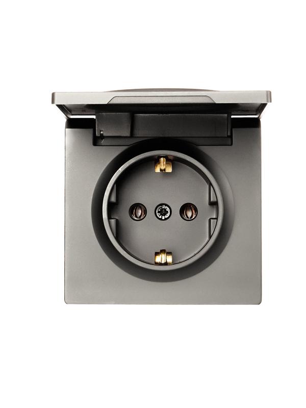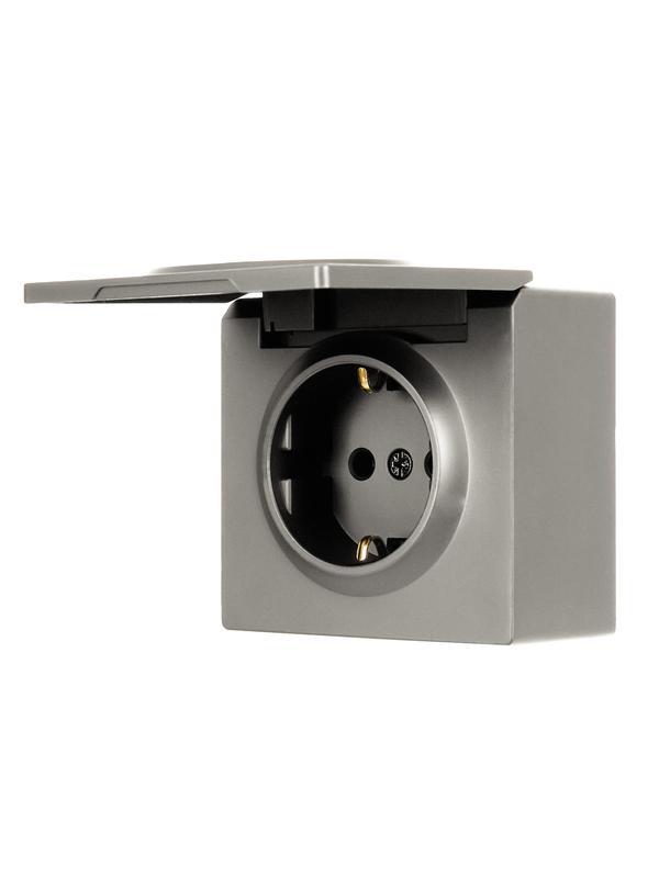 752-3500-123B | Розетка 1-м ОП LETO с заземл. с крышкой LETO ПБТ платина LEZARD