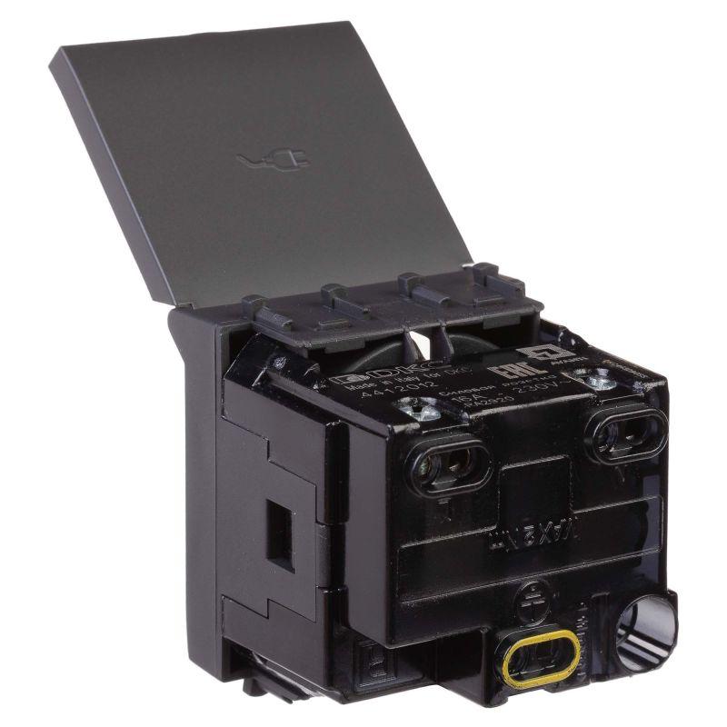 4412012 | Розетка 1-м 2мод. Avanti "Черный матовый" 16А 2P+E защ. шторки с крышкой черн. DKC