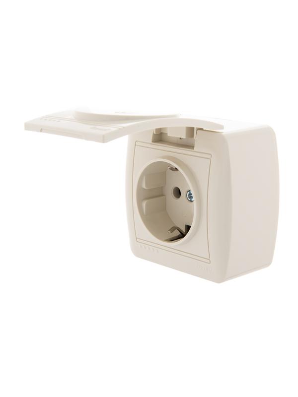 Розетка 1-м ОП Demet с заземл. с защ. крышкой керамика крем. LEZARD 711-0300-123
