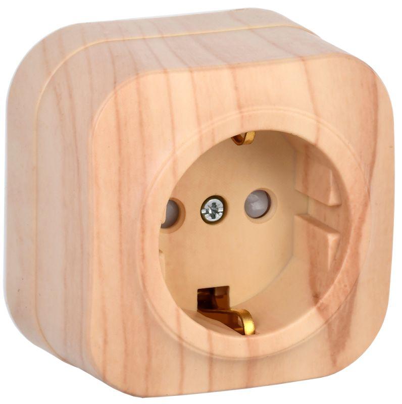 ERH14-K34-16 | Розетка 1-м ОП GLORY РСш20-3-ХС 16А с заземл. защ. шторки сосна IEK