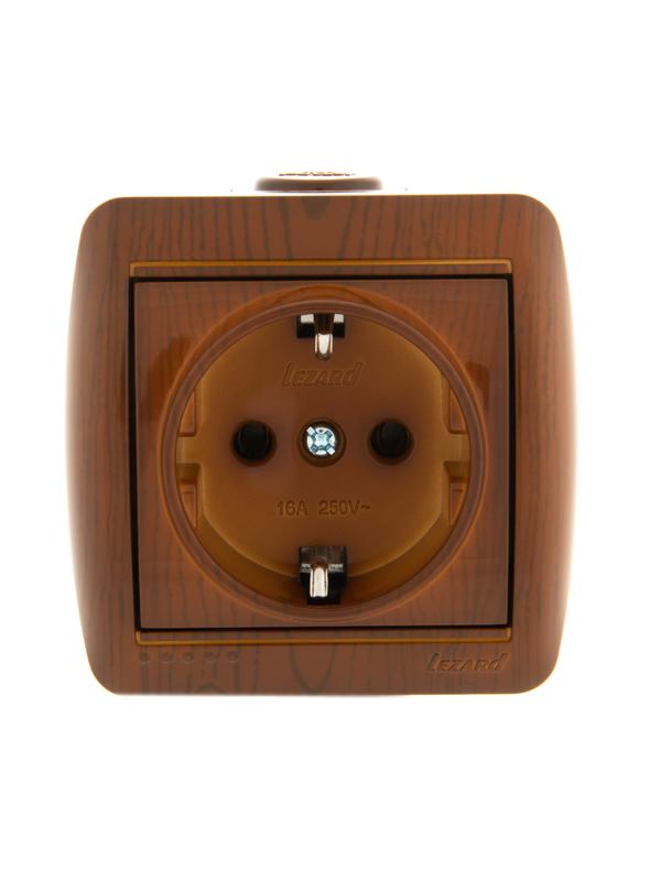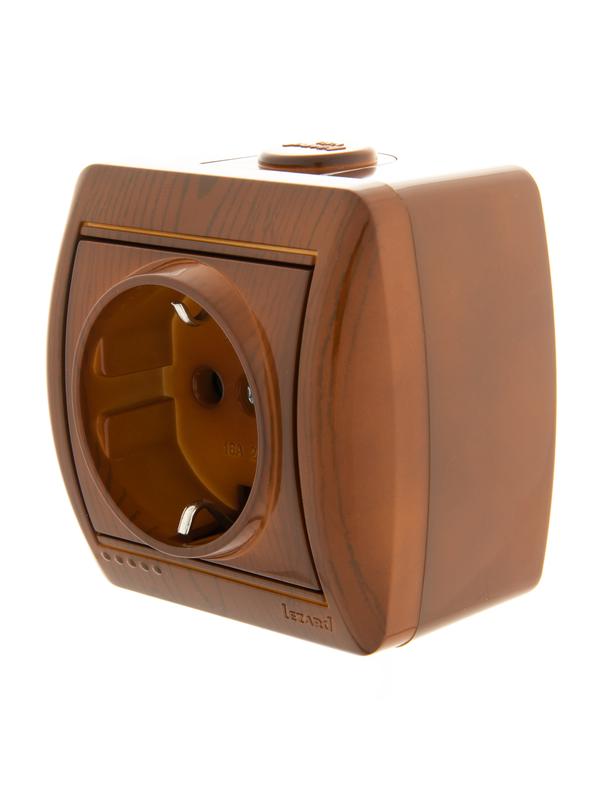 710-0800-122 | Розетка 1-м ОП Nata 16А IP20 с заземл. керамика сосна LEZARD