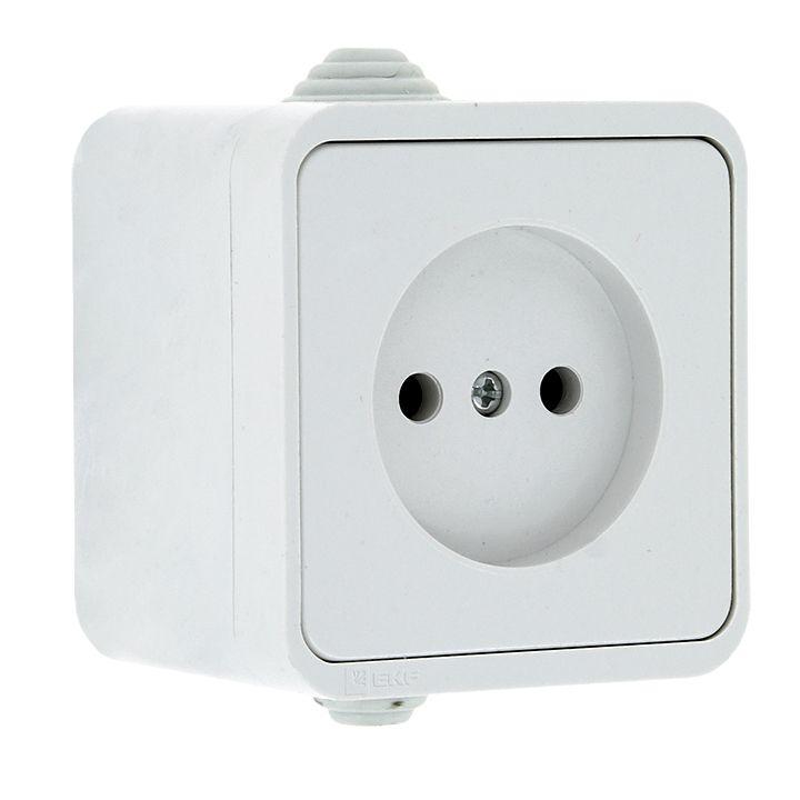 Розетка 1-м ОП Прага 10А IP44 без заземл. бел. EKF EKR10-022-10-44