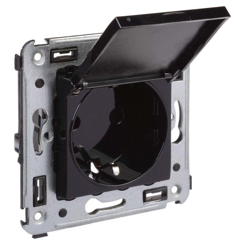 • Розетка 1-м СП 1мод. Glossa 16А IP20 с заземл. защ. шторки с крышкой в сборе антрацит SE GSL000746
