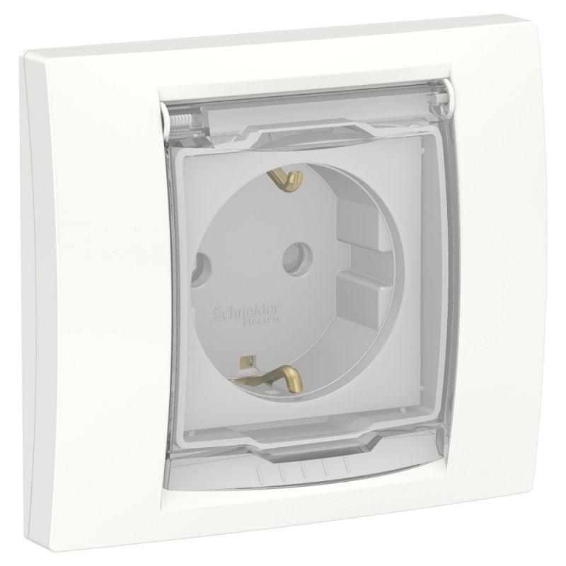 NU003718 | Розетка 1-м СП 2мод. Unica New 16А IP44 с заземл. защ. шторки с крышкой бел. SchE