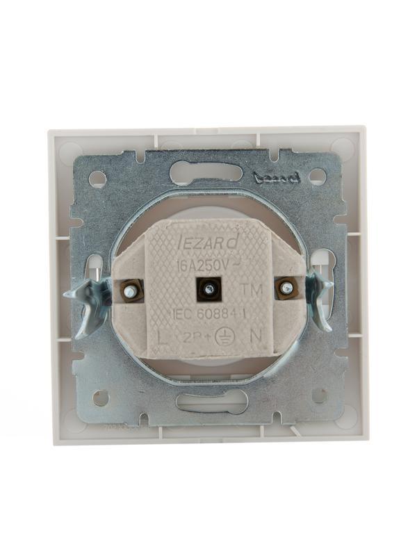 702-3030-121 | Розетка 1-м СП Deriy 16А IP20 без заземл. керамика жемчуж./бел. метал. LEZARD