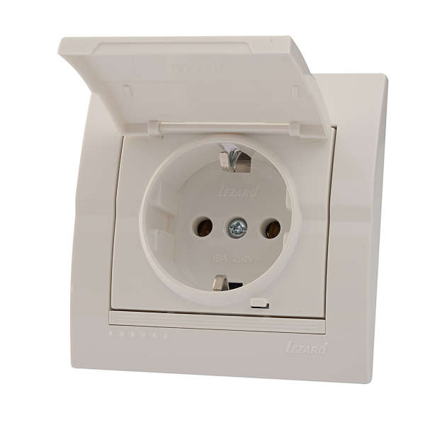 702-0202-123 | Розетка 1-м СП Deriy 16А IP20 с заземл. с защ. крышкой керамика бел./бел. LEZARD