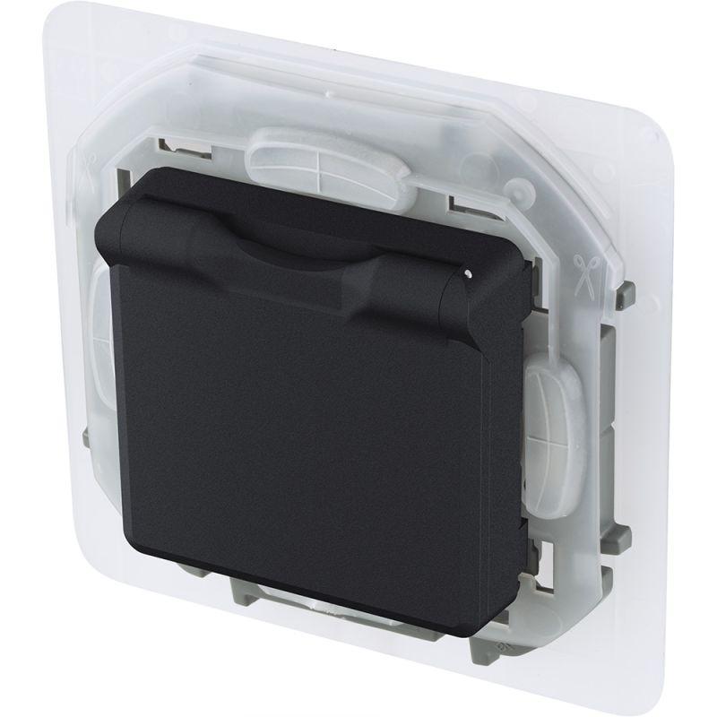 673743 | Розетка 1-м СП Inspiria 16А IP44 250В 2P+E защ. шторки с крышкой немецк. стандарт антрацит Leg