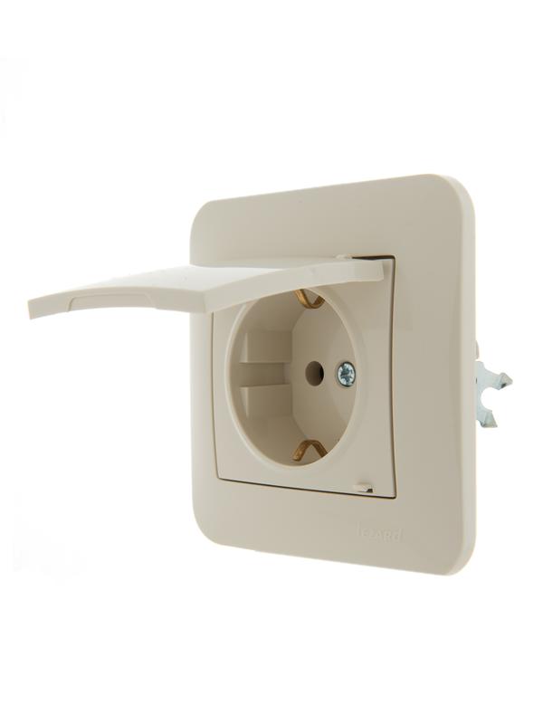 Розетка 1-м СП Karina с заземл. с крышкой керамика механизм крем. LEZARD 707-0388-123
