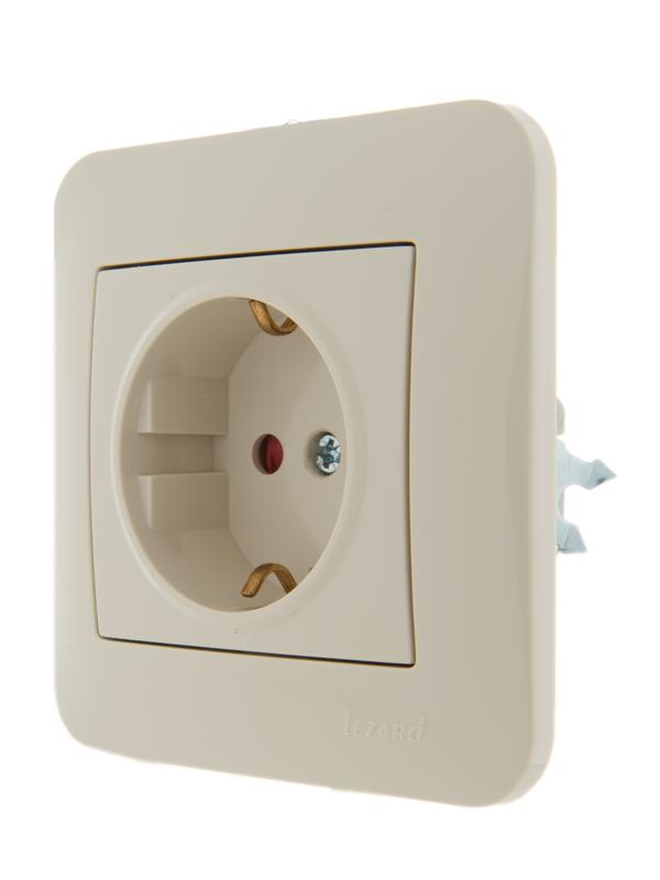 Розетка 1-м СП Karina с заземл. защ. шторки керамика механизм крем. LEZARD 707-0388-124