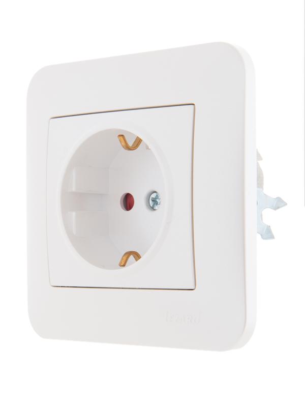 707-3088-124 | Розетка 1-м СП Karina с заземл. защ. шторки керамика механизм жемчуж./бел. перламутр. LEZARD