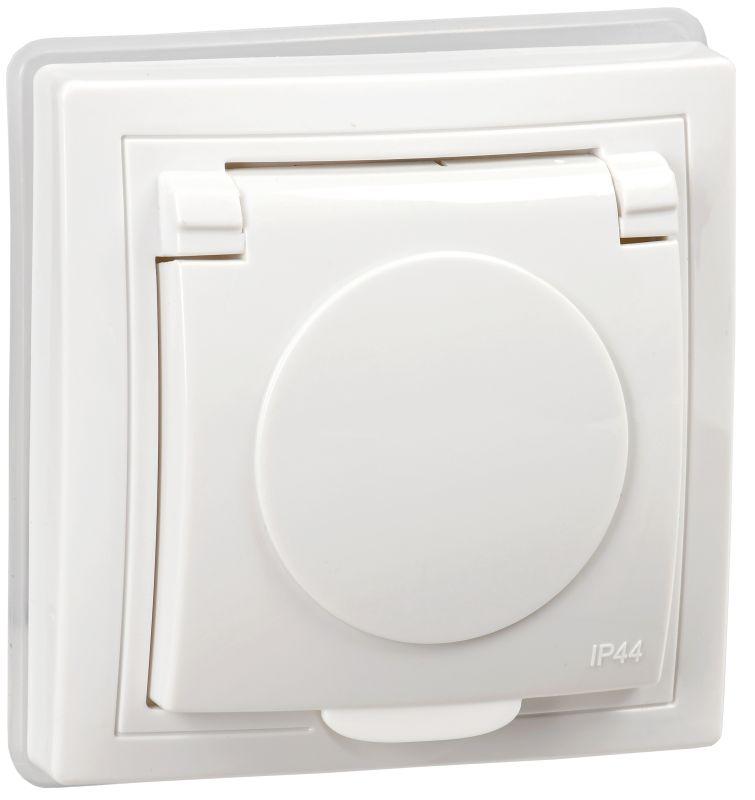 KV-R16-16-44-K01 | Розетка 1-м СП Кварта РСбш10-3-КБ-44 16А IP44 с заземл. защ. шторки с крышкой бел. IEK