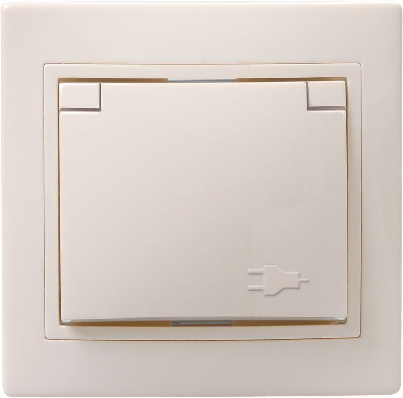 ERK12-K33-16-DM | Розетка 1-м СП Кварта РСбш10-3-ККм 16А IP20 с заземл. защ. шторки с крышкой крем. IEK