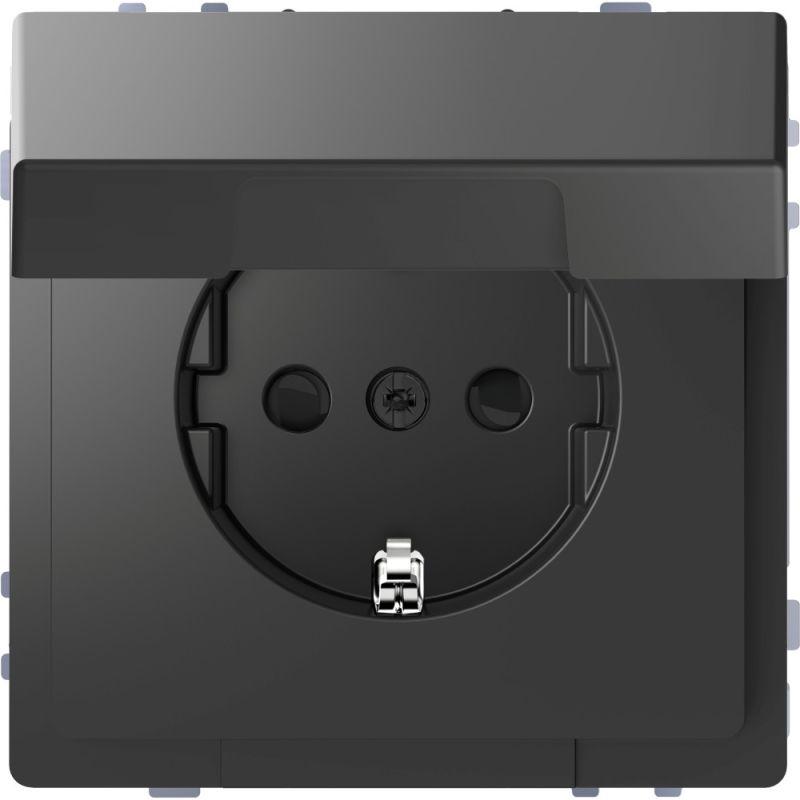 Розетка 1-м СП Merten D-Life 16А IP20 с заземл. с крышкой SD антрацит SchE MTN2310-6034