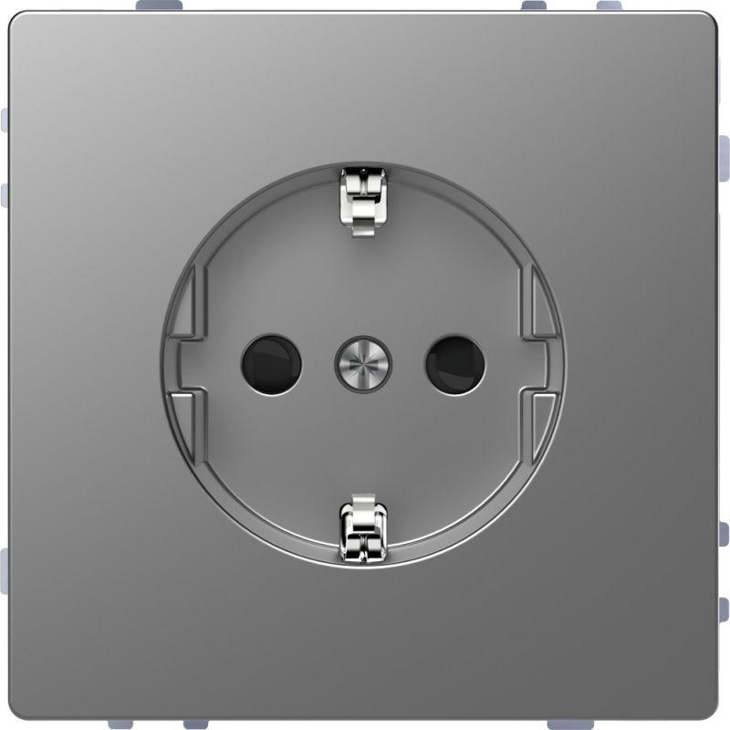Розетка 1-м СП Merten D-Life 16А IP20 с заземл. защ. шторки винт. клеммы SD нерж. сталь SchE MTN2400-6036