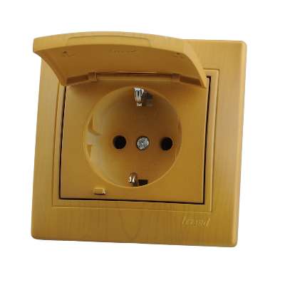 701-0701-123 | Розетка 1-м СП Mira 16А IP20 с заземл. с защ. крышкой керамика ольха LEZARD