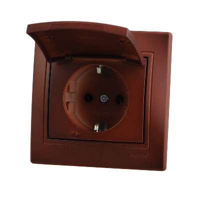 701-0601-123 | Розетка 1-м СП Mira 16А IP20 с заземл. с защ. крышкой керамика вишня LEZARD
