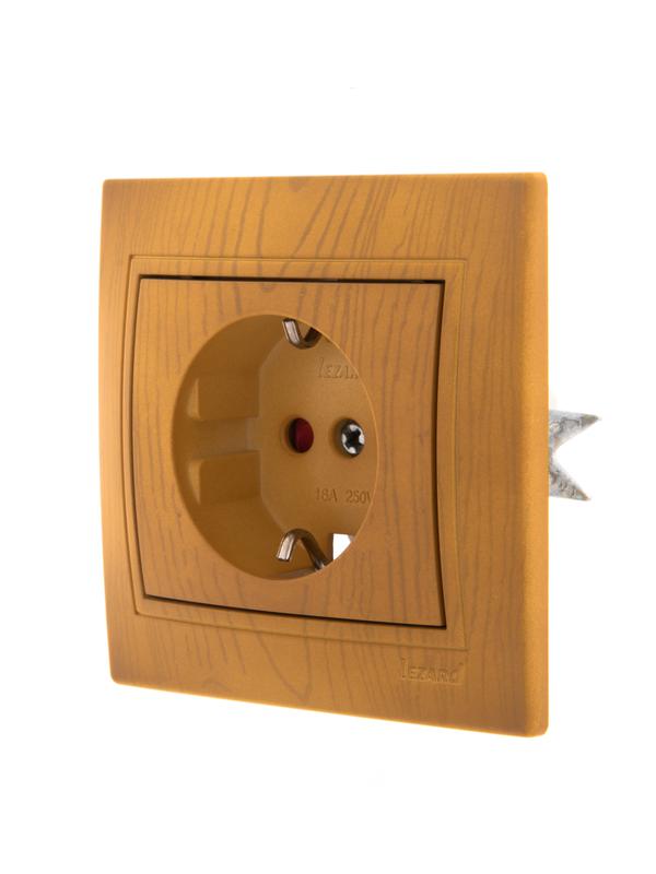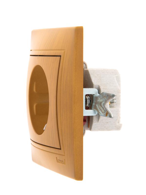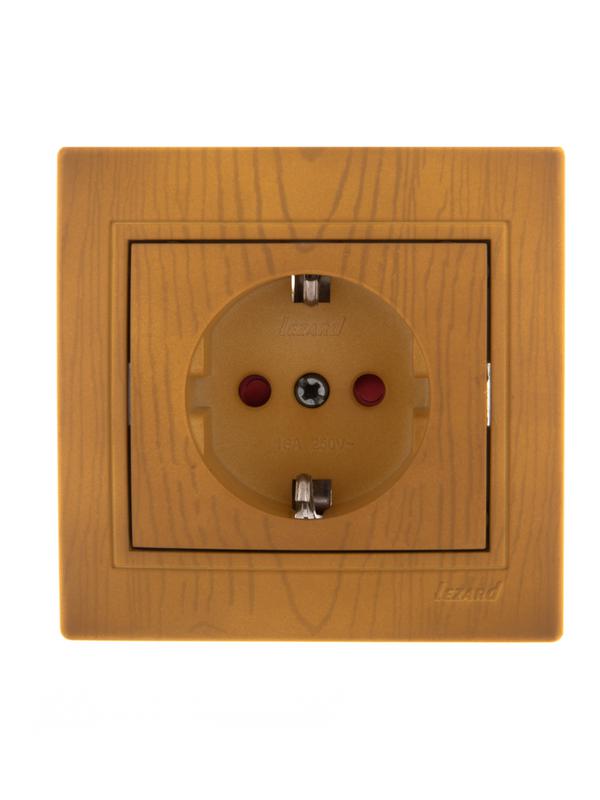 701-0701-124 | Розетка 1-м СП Mira 16А IP20 с заземл. защ. шторки керамика ольха LEZARD