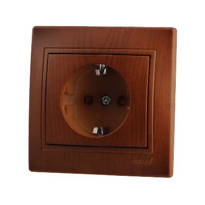 701-0801-124 | Розетка 1-м СП Mira 16А IP20 с заземл. защ. шторки керамика сосна LEZARD
