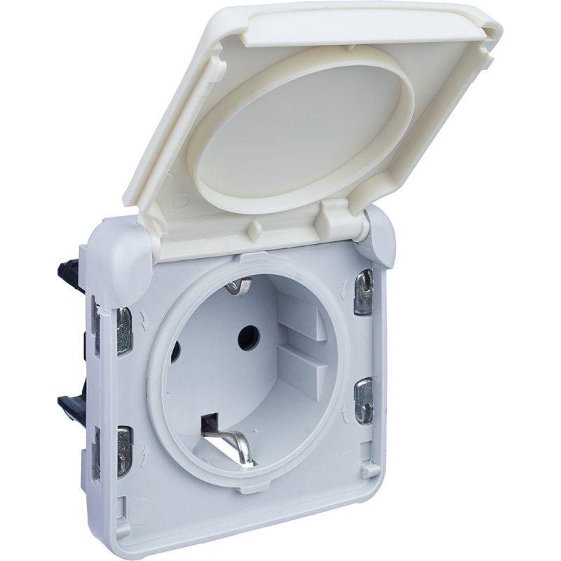 069640 | Розетка 1-м СП Plexo 16А IP55 2P+E с заземл. с крышкой немецк. стандарт безвинтов. клеммы механизм бел. Leg