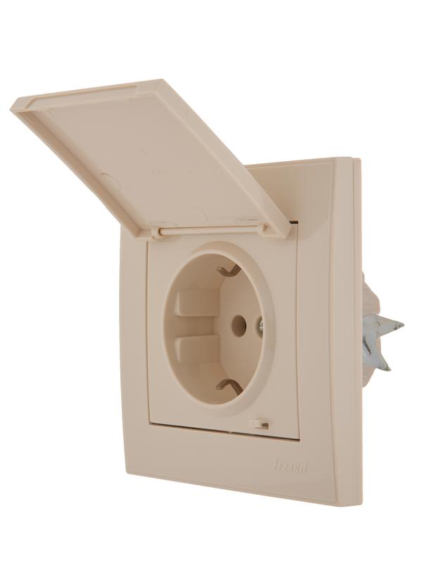 703-0303-123 | Розетка 1-м СП Rain с заземл. с защ. крышкой керамика крем. LEZARD