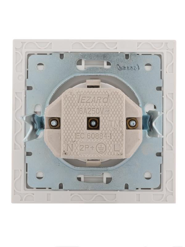 703-0225-123 | Розетка 1-м СП Rain с заземл. с защ. крышкой керамика с хром. боковой вставкой бел. LEZARD
