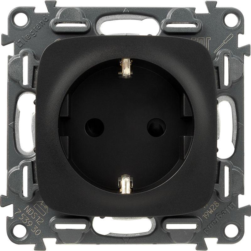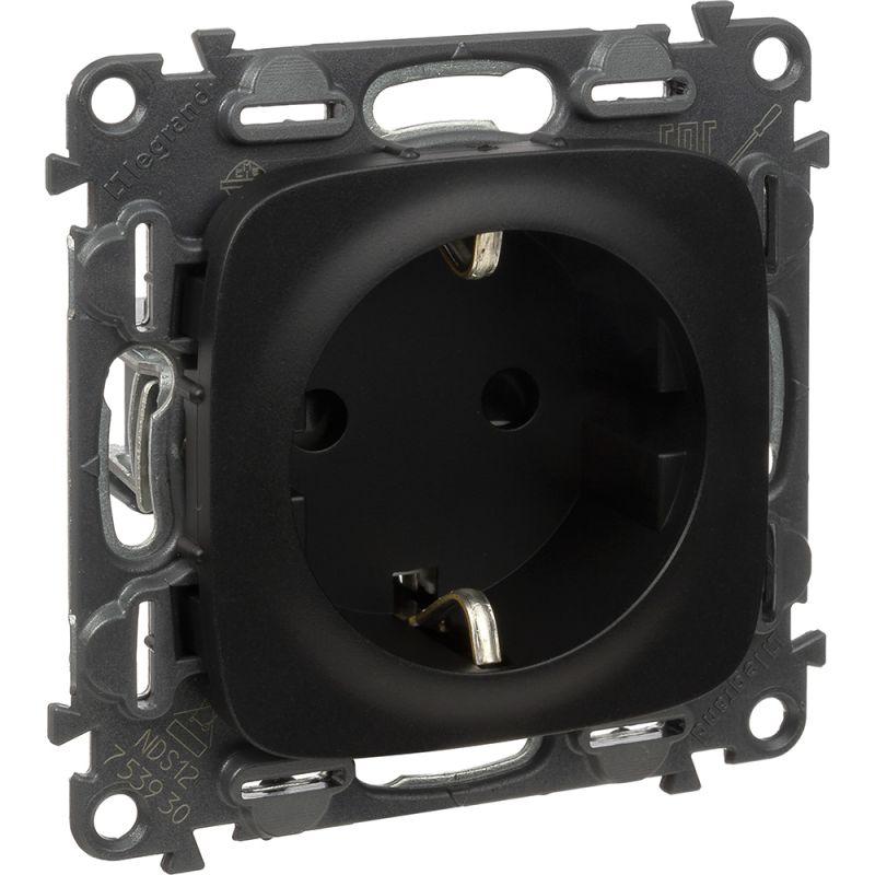 Розетка 1-м СП Valena Allure 16А IP20 250В 2P+E защ. шторки безвинтов. клеммы с лицев. панелью механизм антрацит Leg 753930