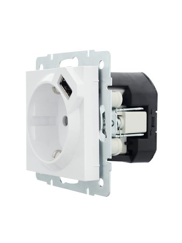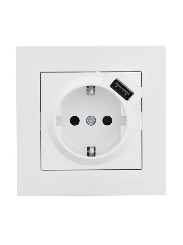 742-0288-181 | Розетка 1-м СП Vesna с заземл. с заряд. устройством USB механизм бел. LEZARD