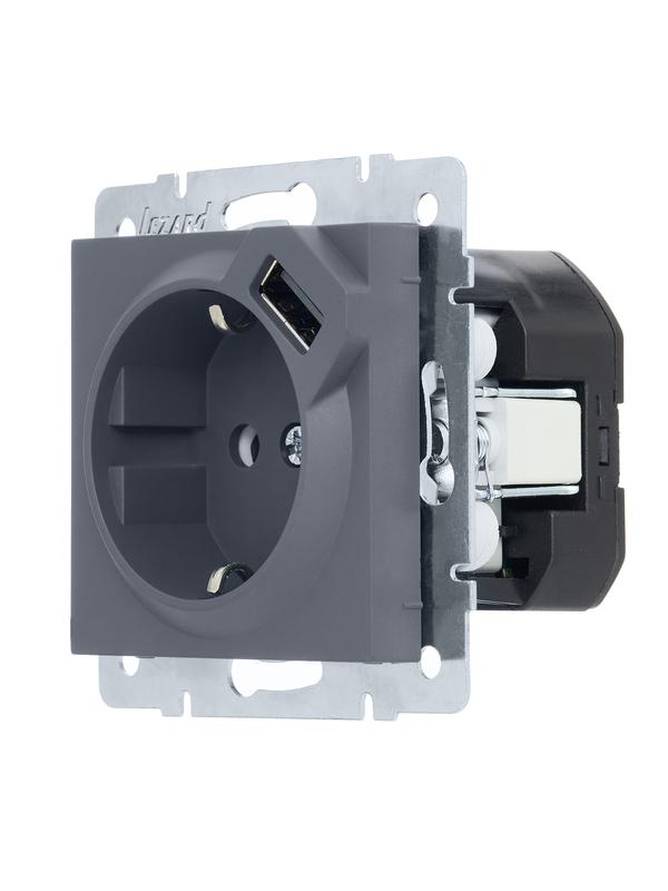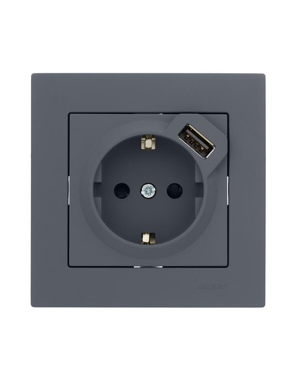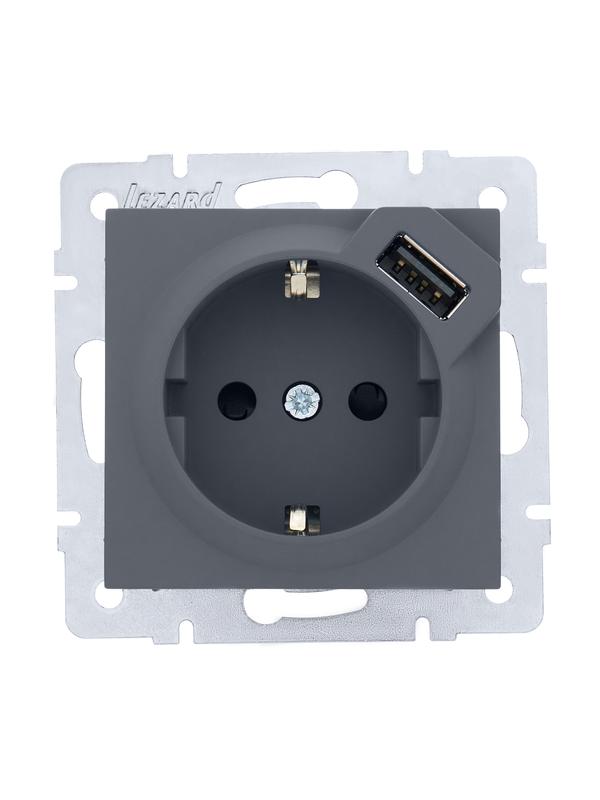 742-3488-181 | Розетка 1-м СП Vesna с заземл. с заряд. устройством USB механизм графит LEZARD