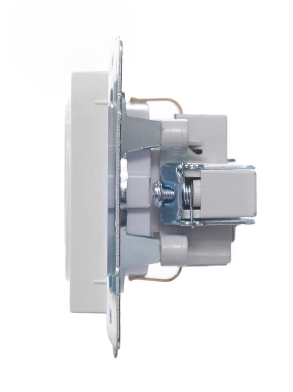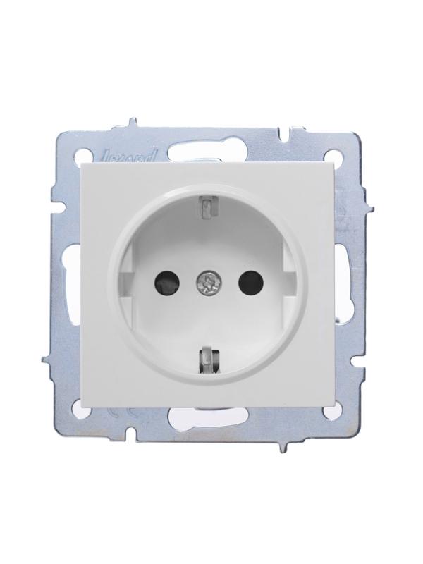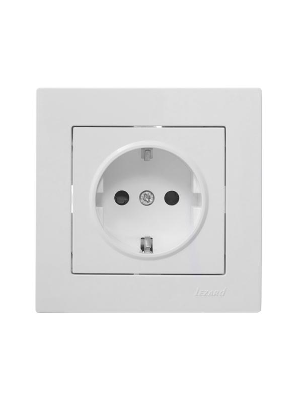 742-0288-124B | Розетка 1-м СП Vesna с заземл. защ. шторки ПБТ механизм бел. LEZARD