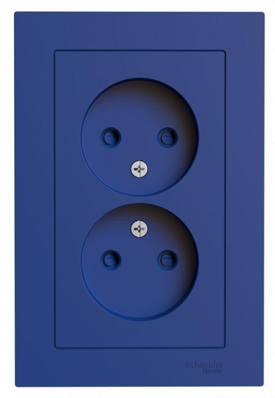 ATN001122 | Розетка 2-м. AtlasDesign 16А без заземл. со шторками в сборе аквамарин SE