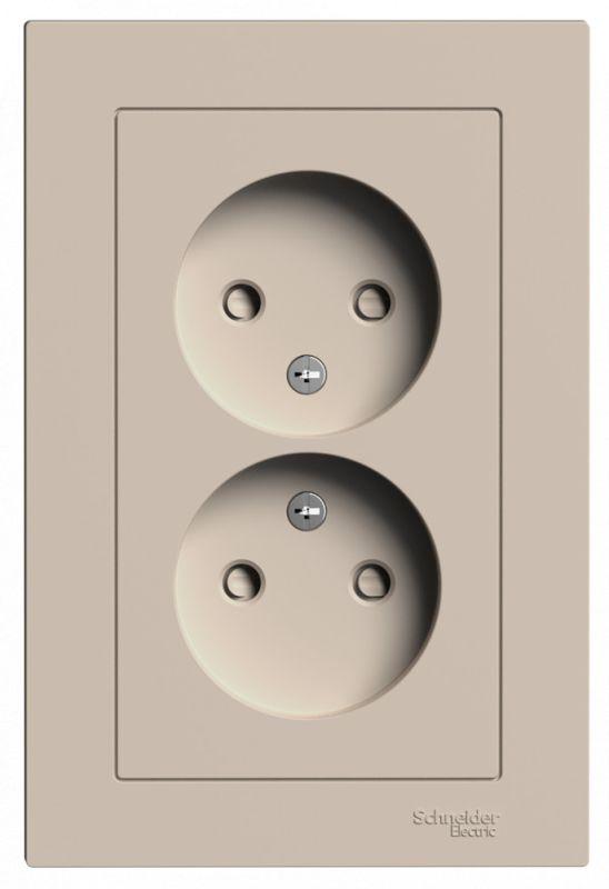 ATN001222 | Розетка 2-м. AtlasDesign 16А без заземл. со шторками в сборе песочн. SE
