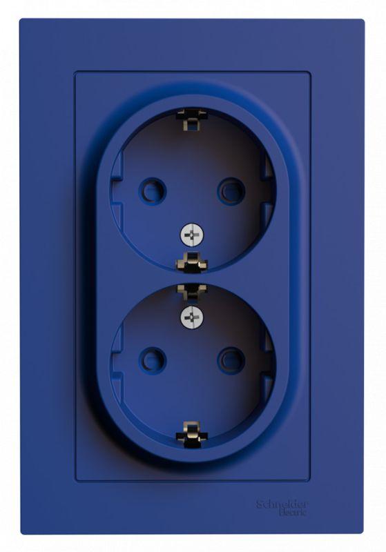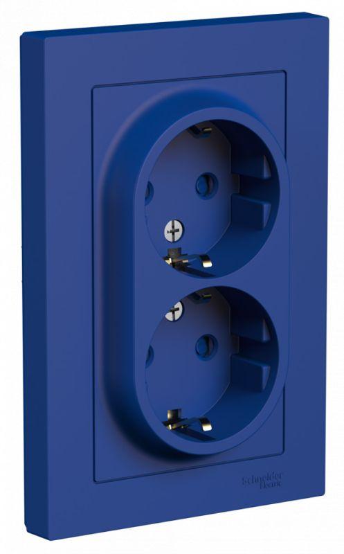 ATN001126 | Розетка 2-м. AtlasDesign 16А с заземл. со шторками в сборе аквамарин SE