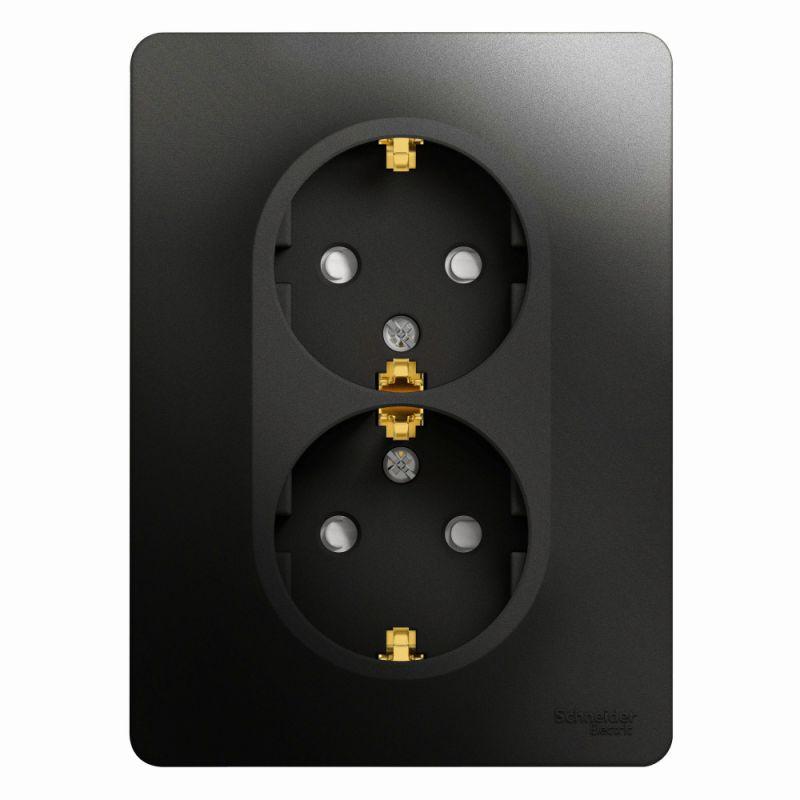 GSL000726 | Розетка 2-м Glossa 16А с заземл. защ. шторки в сборе антрацит SE