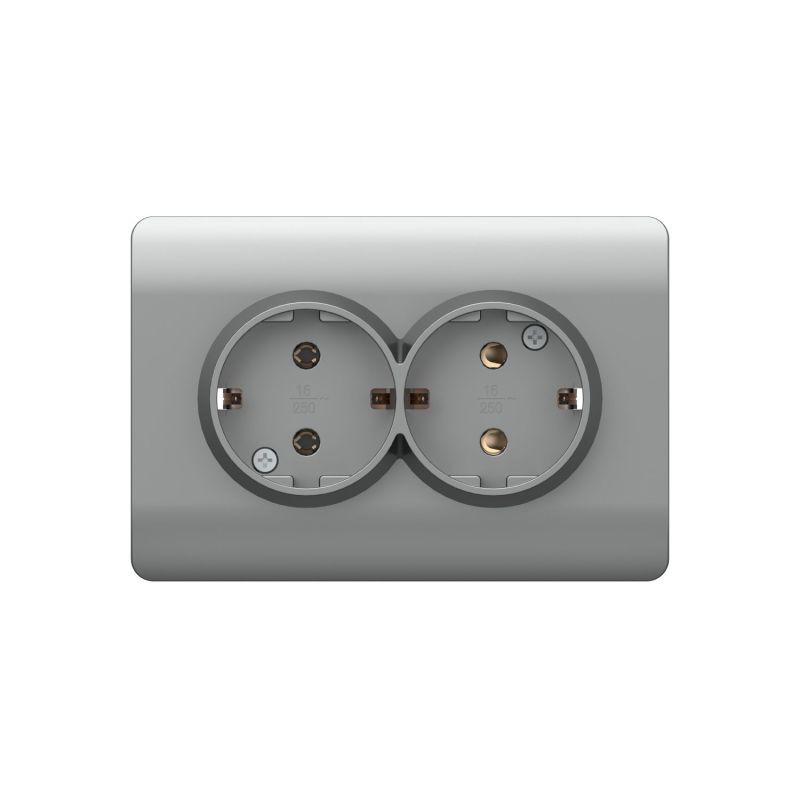431419 | Розетка 2-м NEW3-E с заземл. защ. шторки 16А серебр. CHINT