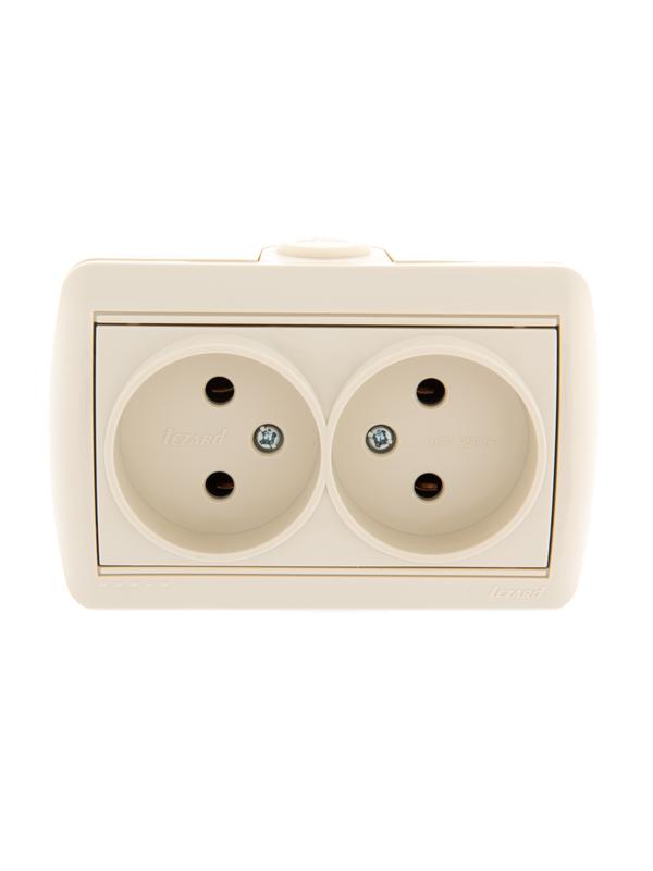 710-0300-128 | Розетка 2-м ОП Nata 16А IP20 без заземл. керамика крем. LEZARD