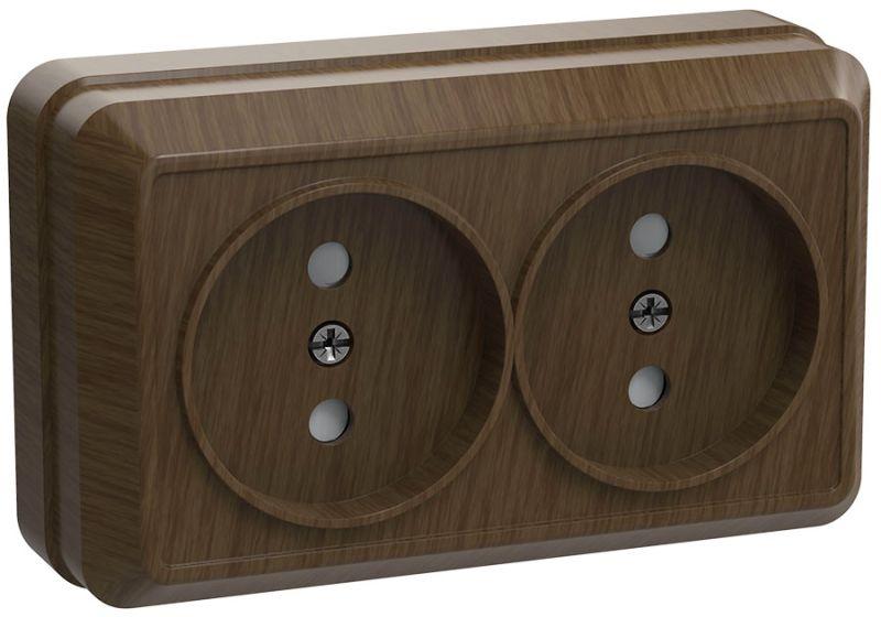 ERO20-K04-10-DC | Розетка 2-м ОП Октава 10А IP20 без заземл. дуб IEK
