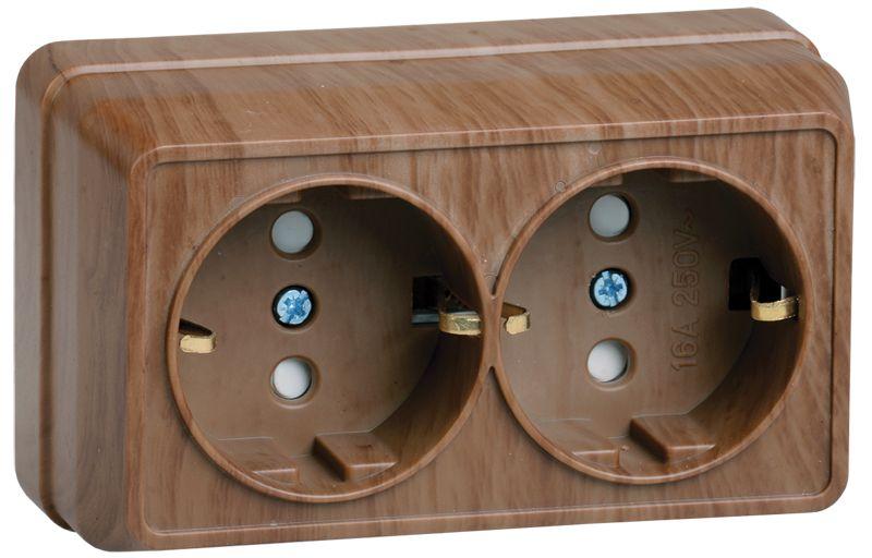 ERO24-K04-16-DC | Розетка 2-м ОП Октава РСш22-3-ОД 16А IP20 с заземл. защ. шторки дуб IEK