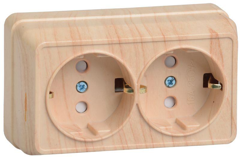 ERO24-K03-16-DC | Розетка 2-м ОП Октава РСш22-3-ОС 16А IP20 с заземл. защ. шторки сосна IEK