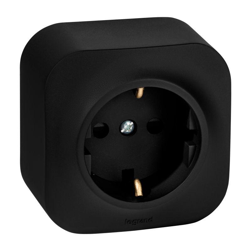 782476 | Розетка 1-м ОП Quteo 16А IP20 250В 2P+E с заземл. защ. шторки черн. матов. Leg