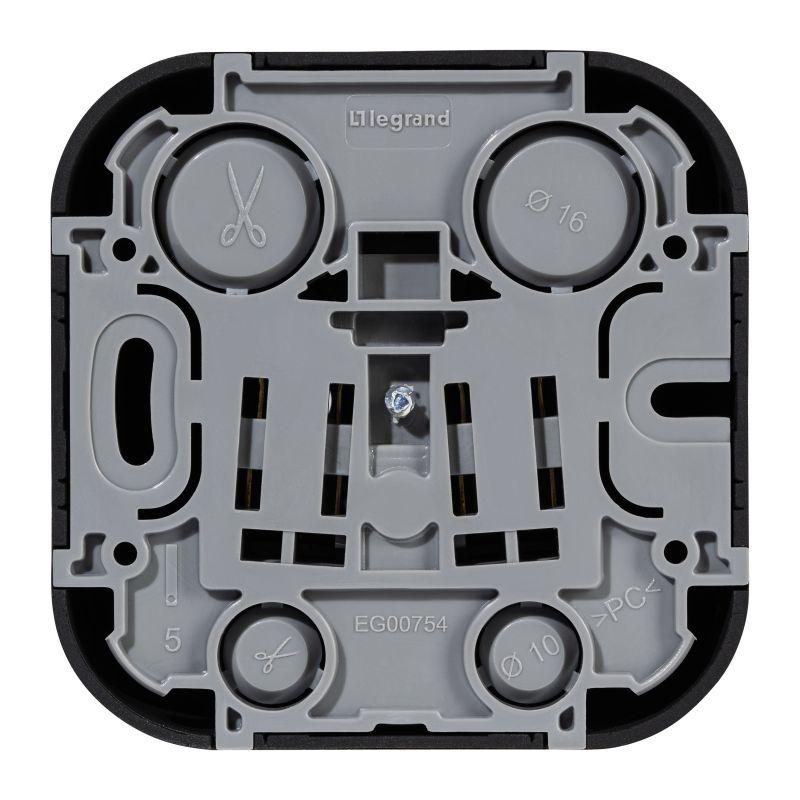- Перфорация на корпусе для безошибочного вырезания отверстий при монтаже открытой проводки